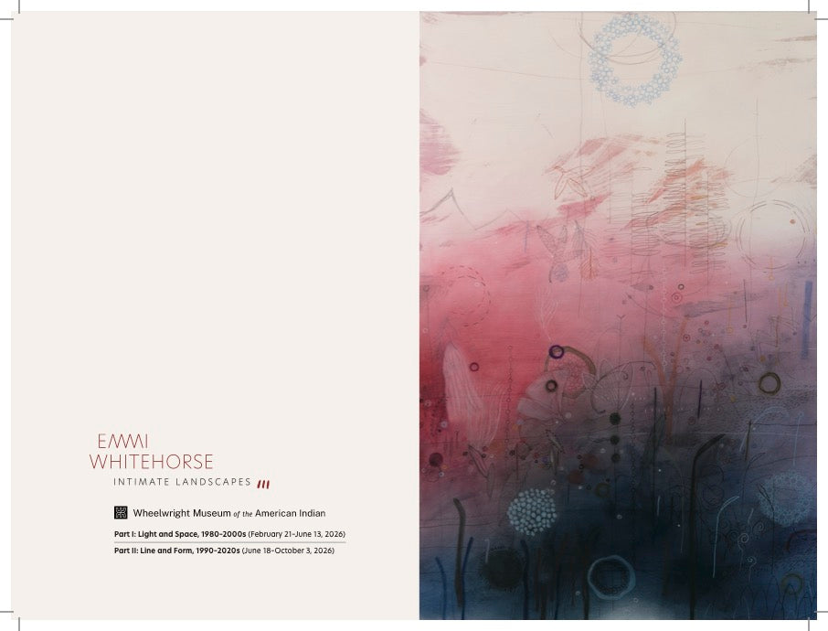 Emmi Whitehorse: Intimate Landscapes is an atmospheric portrait of an artist whose voice and vision are increasingly vital to both national and international art discourse. The exhibition unfolds over two parts in a retrospective format, featuring 40 works: Part I: Light and Space (1980–2000s) and Part II: Line and Form (1990–2020s). This dual structure invites viewers to trace this compelling biography through color and time, which chronicles Whitehorse’s artistic evolution from 1980 through 2026. This publication includes contributions from Whitehorse; Henrietta Lidchi - Wheelwright Museum Executive Director; Hadley Jensen, the exhibition’s curator; and Diné art historian Kathleen Ash-Milby.